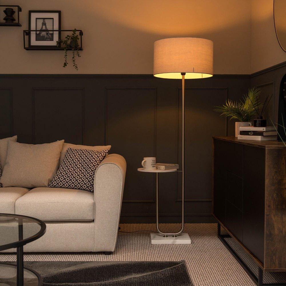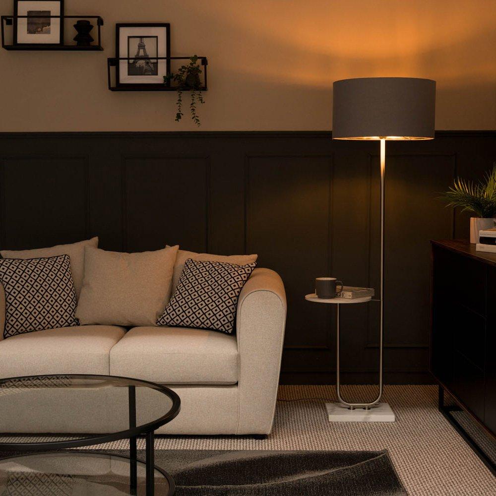 Tavel Brushed Chrome Marble Base Floor Lamp With Table And Large Grey Shade