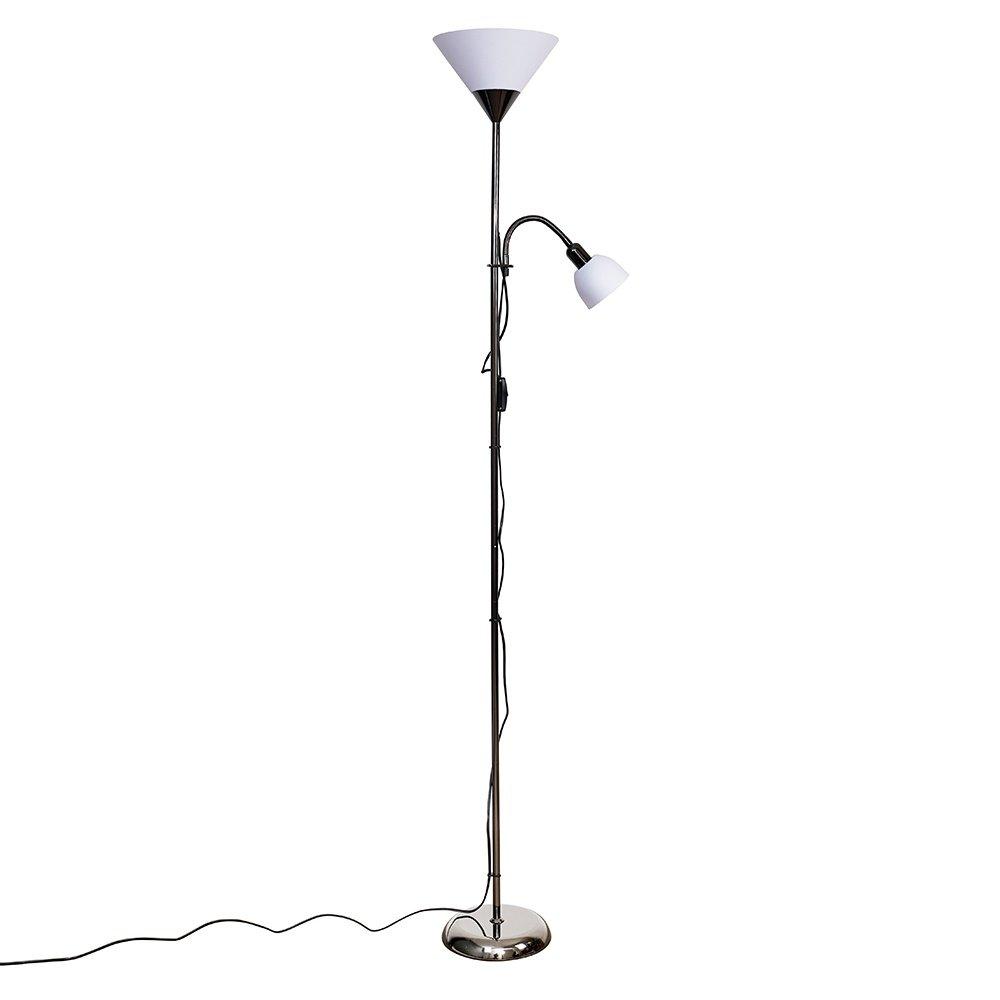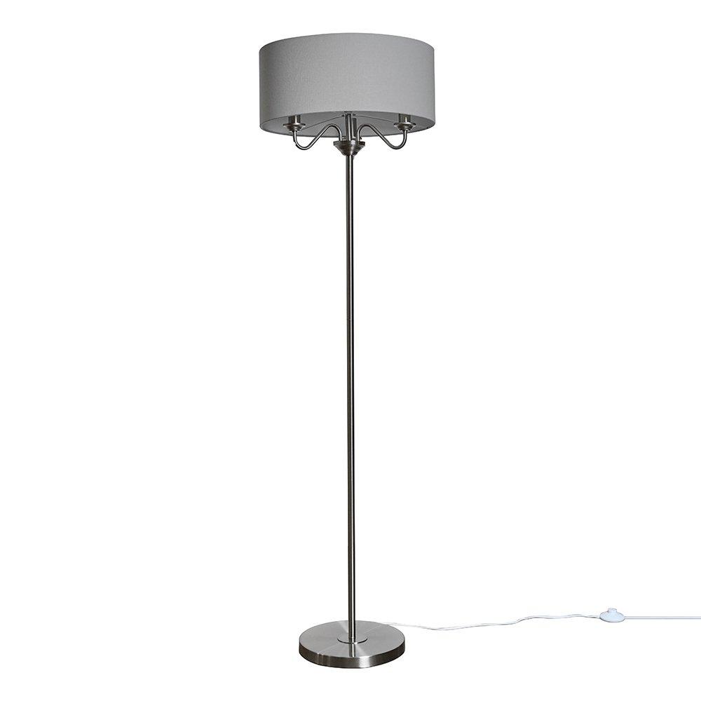 MiniSun | Modern Brushed Chrome Floor Lamp with a Grey and Chrome Shade | Floor Lamps & Torchieres, Home Décor & Improvement Essential | Includes 6W GLS Bulb [3000K Warm White]