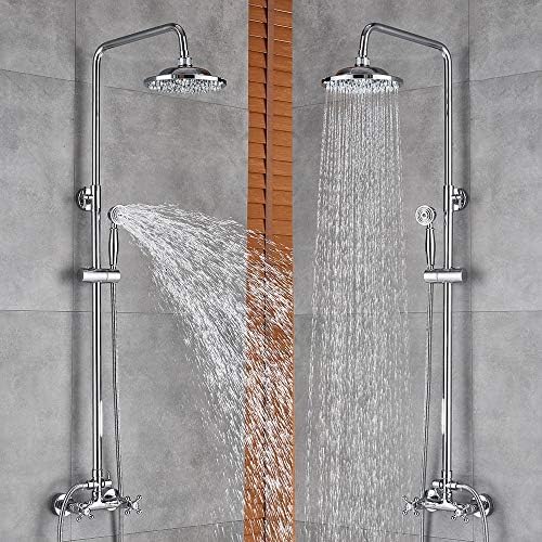 LULUMAIC Bathroom 8 Inch Shower Mixer Set Bath Shower Faucet Swivel Bar Chrome Polish Hot and Cold Water Shower Wall Mounted