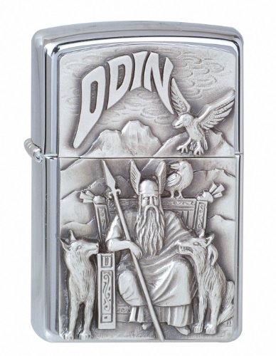Zippo Windproof Lighter - Viking Odin - High Polish Chrome, Emblem - Refillable, Lifetime Use - Adjustable Flame - Gift Box - Metal Construction - Made in USA