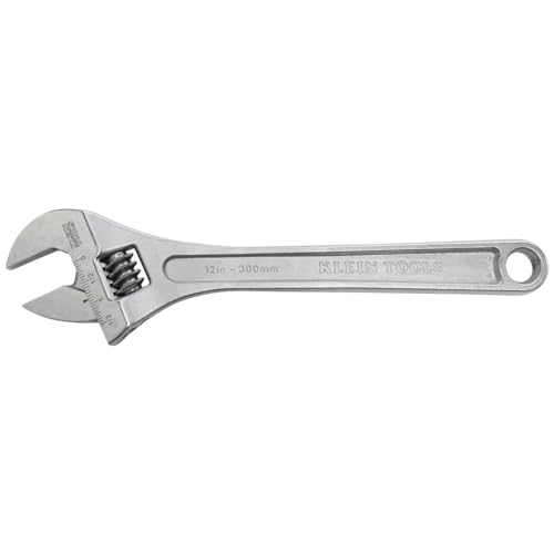 KLEIN TOOLS 507-12 Adjustable Wrench, Extra Capacity Jaw Forged Drive Wrench with High Polish Chrome Finish, 12-Inch