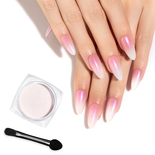 beetles Gel Polish Chrome Powder for Gel Nails, 1g/Jar White Pearl Nail Powder Mirror Effect with 1Pcs Sponge Stick Nail Glitter Manicure Holographic Pigment for Nail Art Design for Girls