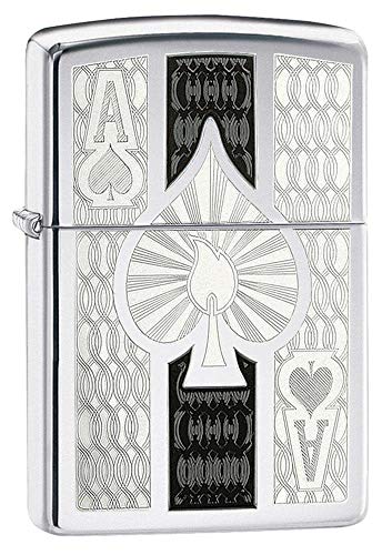 Zippo Windproof Lighter - Ace - High Polish Chrome - Colour Image & Auto Engrave - Refillable - Reusable - Windproof Design - Gift Box - Metal - Made in USA