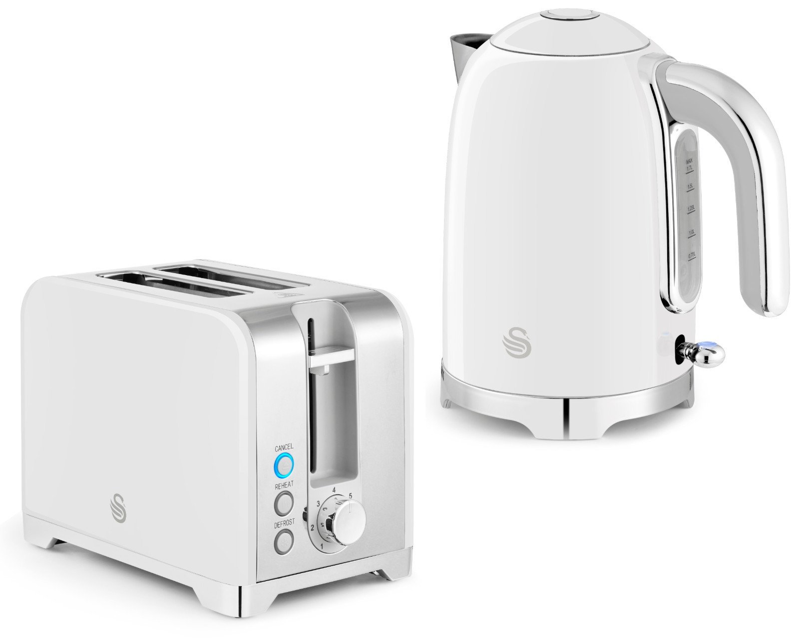 Swan Solace White Kettle & 2 Slice Toaster High Gloss White Finish & Chrome Trim