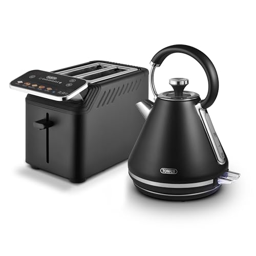 Tower Mirage Kitchen Set, 1.7L Rapid Boil Kettle, 2 Slice Toaster with Digital Control Panel, 925W, Black with Chrome Trim