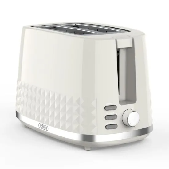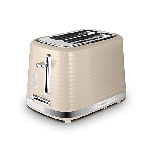 Tower T20082MSH Solitaire 2 Slice Toaster, Browning Control, 850W, Latte with Chrome Accents