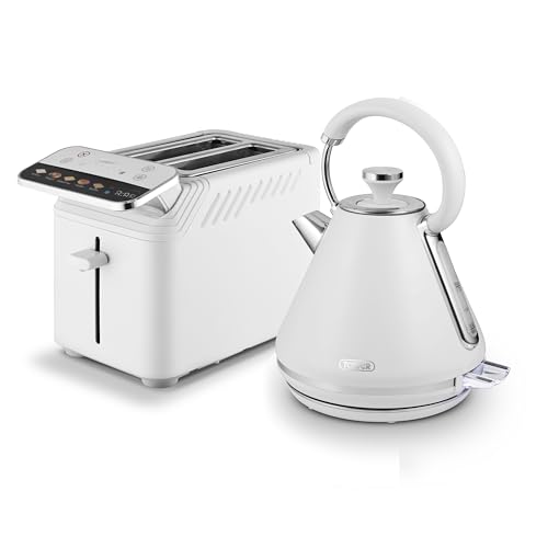 Tower Mirage Kitchen Set, 1.7L Rapid Boil Kettle, 2 Slice Toaster with Digital Control Panel, 925W, White with Chrome Trim, T10087WHT & T20096WHT
