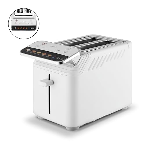 Tower T20096WHT Cavaletto Mirage 2 Slice Toaster with Digital Control Panel, 5 Pre-Set Toasting Options, Countdown Timer, Memory Function, 925W, White with Chrome Trim