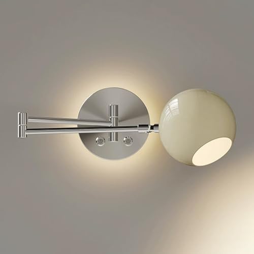 Telescopic Swing Arm Wall Lamp, Spherical Metal Wall Light with Chrome Finish, 360° Adjustable Wall Sconce, Modern LED Wall Lamps - 12W - 3 Color Modes, Bedside Reading Wall Lights