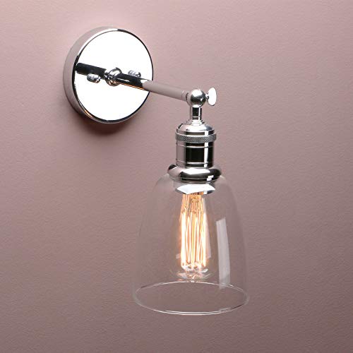 SADRYHFG Lighting Vintage Loft Bar Wall Lights Chrome Sconce Wall Lamp Fittings with with Tapered Clear Glass Shade for Kitchen Island Bedroom Cafe Corridor Restaurant (Chrome)