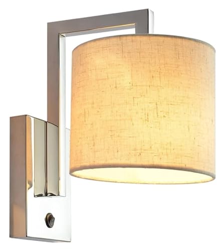 SADRYHFG Lighting Vintage Modern Beige Fabric Shade Wall Lamps Beside Wall Sconces Lights for Living Room Bedroom Hallway E14 Screw (Chrome)