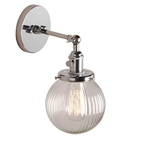 SADRYHFG 15cm Industrial Modern Vintage Retro Wall Lights Loft Bar Kitchen Sconce Lights Lamp Fixture with Ribbed Globe Clear Glass Light Shade (Chrome)
