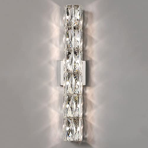 LYGXWJFC Wall Lamps Sconces Long Crystal Wall Sconces Chrome Crystal Wall Lights Linear Bathroom Vanity Light Fixtures Bedside Wall Mount Lamp(20CM)