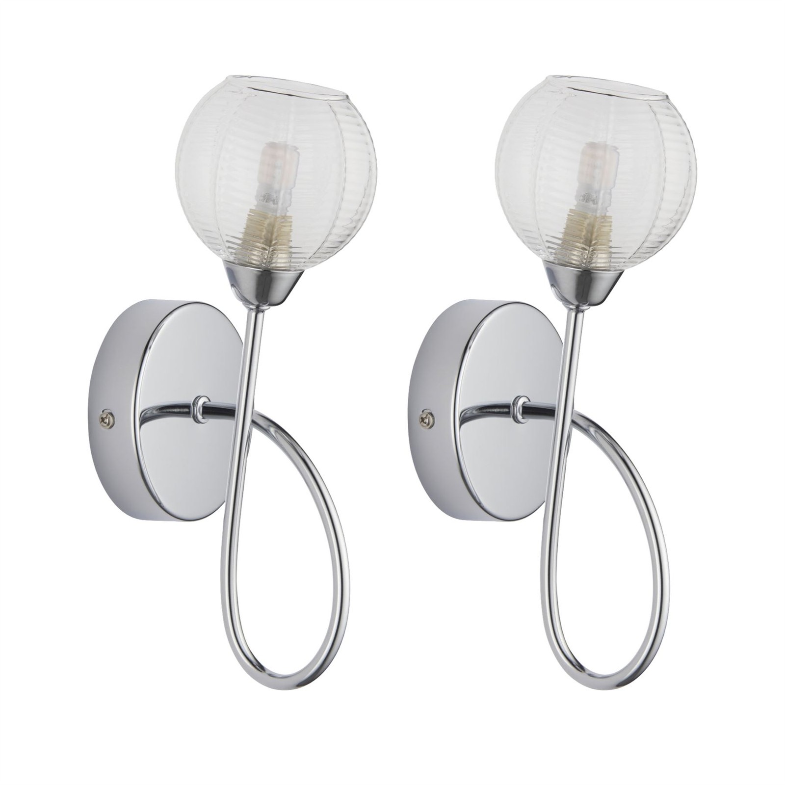 Set of 2 Modern Chrome Wall Lights Sconce Lamp with Ribbed Glass Shades