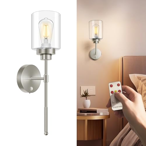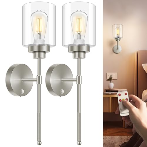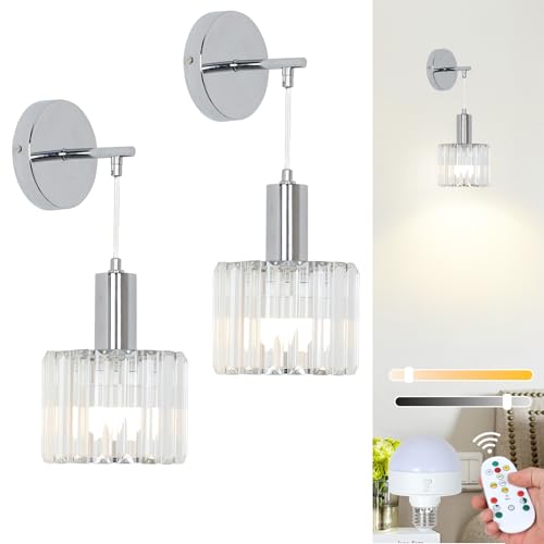 Aiehnid Battery Operated Wall Lights Set Of 2,with Color Temperature Dimmable Remote Control,Battery Powered Non Hardwired Wall Lamp,for Bedroom Farmhouse Bedside Reading Light (Color : Chrome)