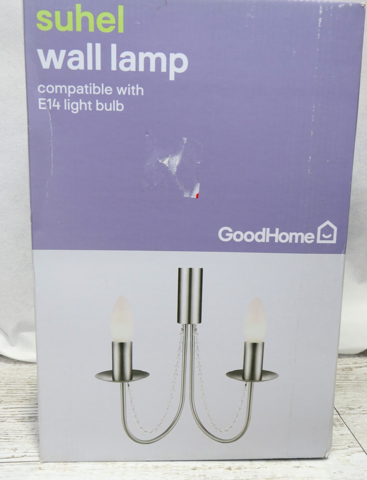 GoodHome Suhel Chrome Effect Double Wall Light Jewel Accent 2 Lights IP20