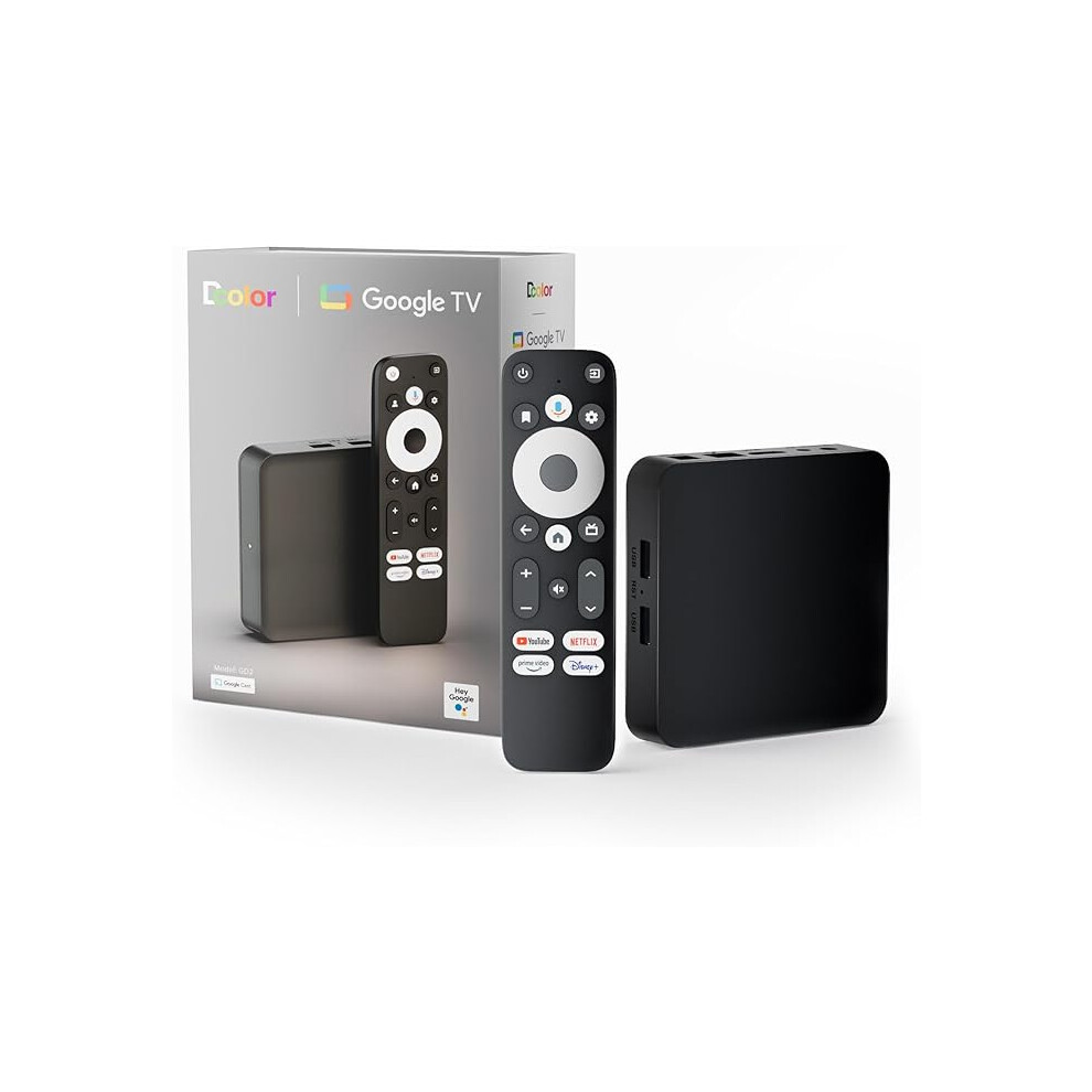 Dcolor GD2 Android Google TV 4K Streamer Media Player Box Voice Assistant Remote Chromecast Built-In Smart Home Control WiFi Netflix Prime Video