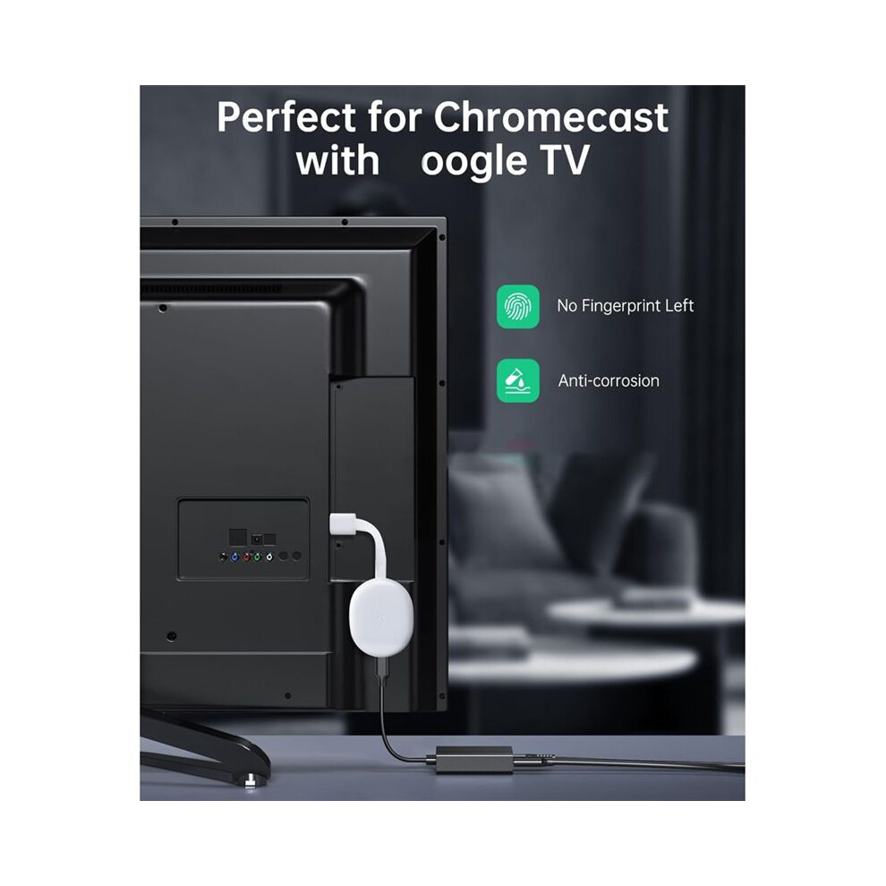 USB-C Ethernet Adapter 2-in-1 1000Mbps RJ45 Network Converter for Chromecast with TV Plug and Black