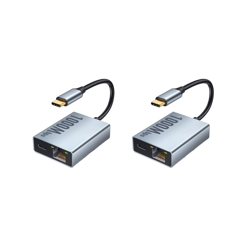 2X USB-C Ethernet Adapter 2-in-1 1000Mbps RJ45 Network Converter for Chromecast with TV Plug and Grey