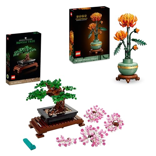 LEGO Icons Bonsai Tree + Chrysanthemum Flower Building Set Bundle Creative Model Kit Artificial Plant Gift for Women Men Her or Him 10281 + 10368