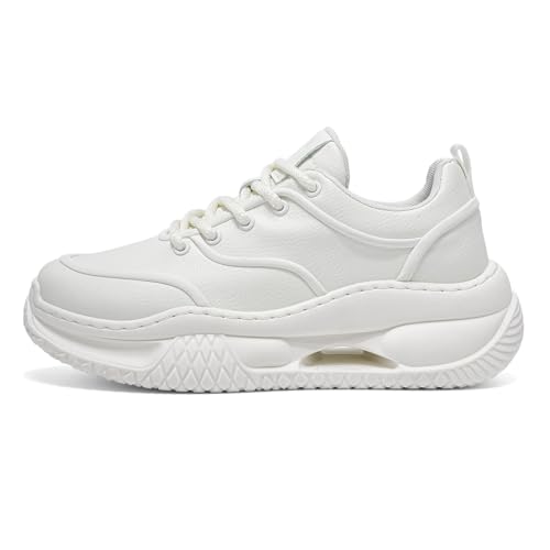 Men's Chunky Platform Trainers Non Slip PU Leather Casual Shoes Comfortable Fashion Walking Trainers for Everyday White UK 6.5