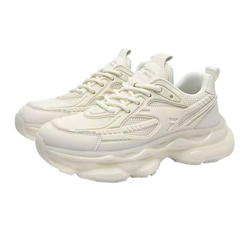 Running Shoes for Men Sports Shoes Shock Absorbing Athletic Sneakers Chunky Soles Trainers Anti Slip Outdoor Shoe Lace Up Summer Sneakers Breathable Walking Trainers Trendy Casual Shoe Beige