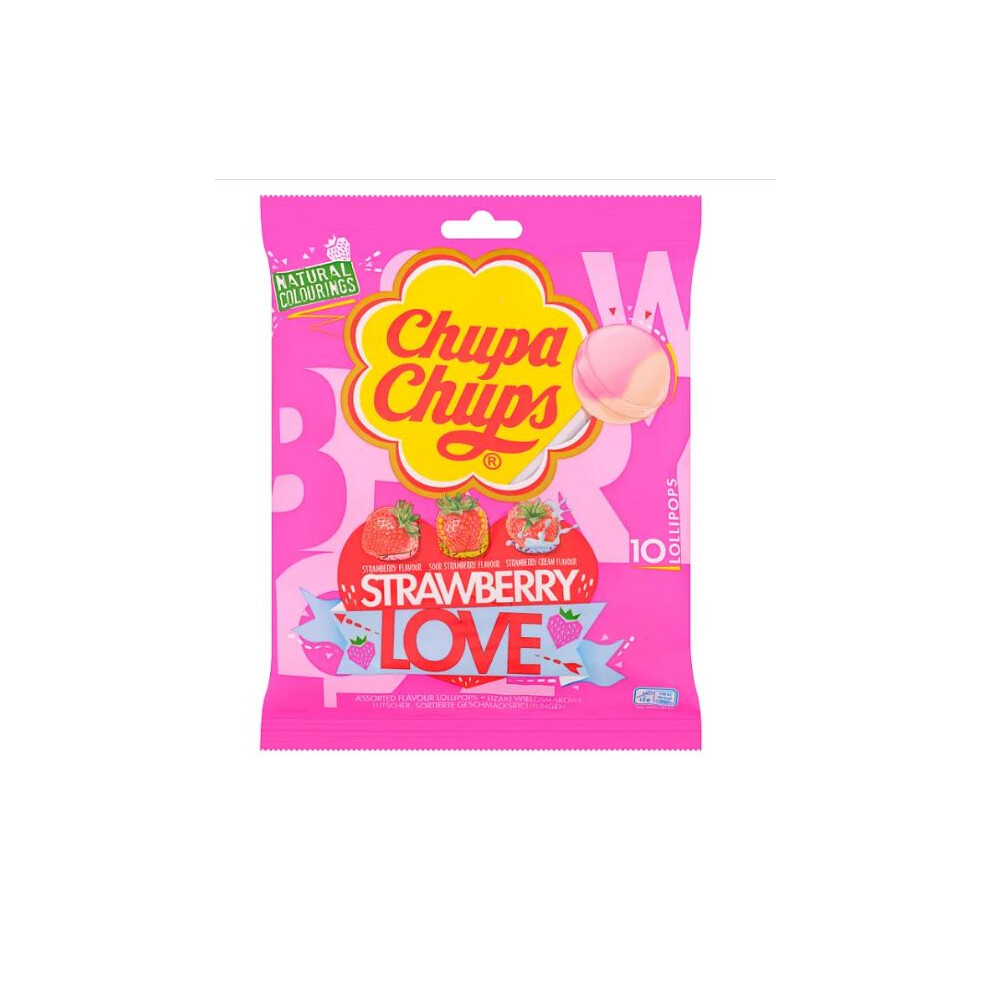 Chupa Chups 10 Strawberry Love Lollipops, 120g (30pcs