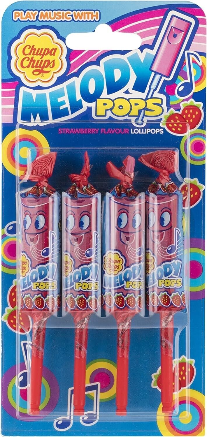 1X 4Pack Chupa Chups Melody Pops Strawberry Flavour Lollipops - NEW UK STOCK