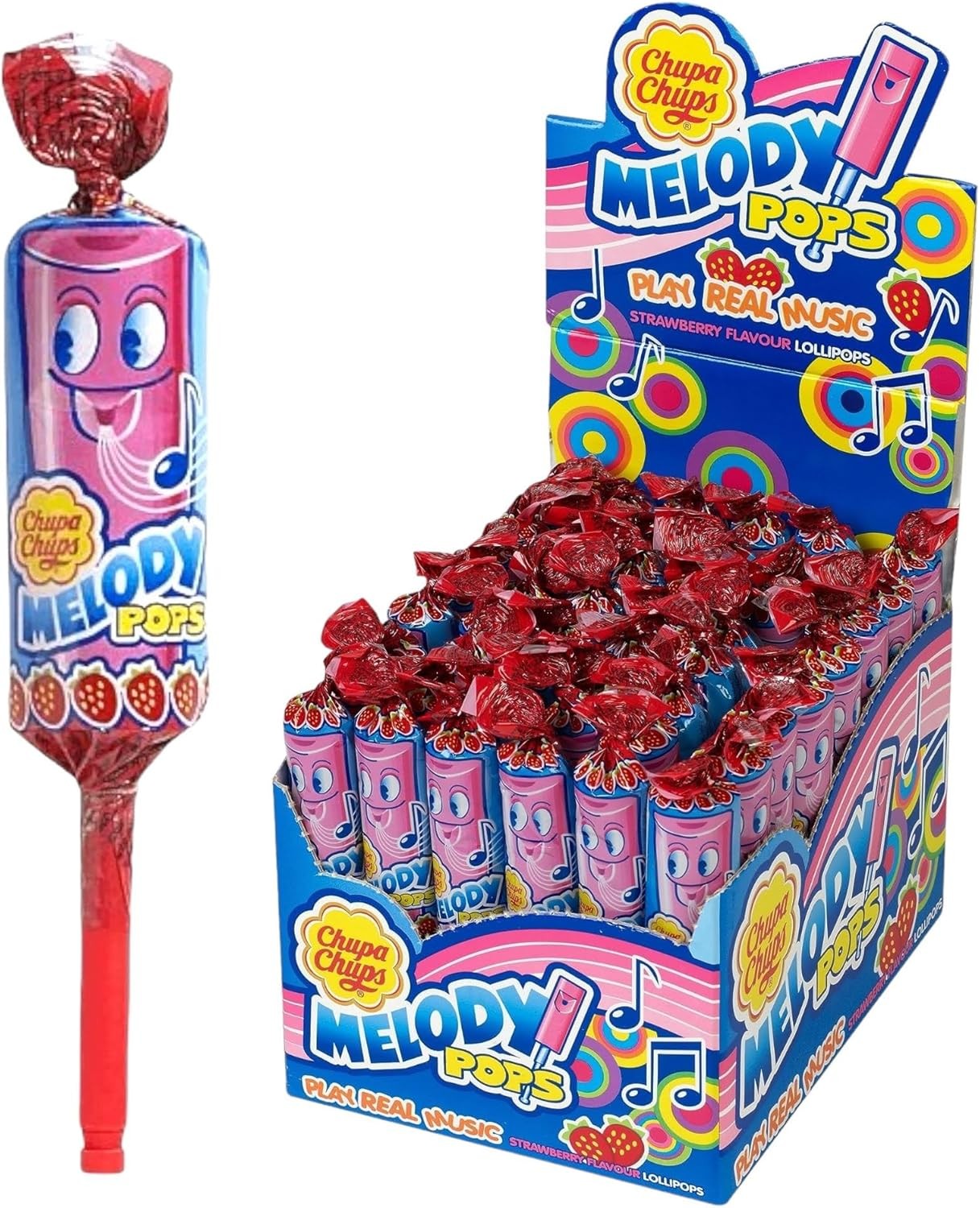 Chupa Chups Strawberry Melody Pops - Fun Strawberry Flavoured Lollipops with Mu