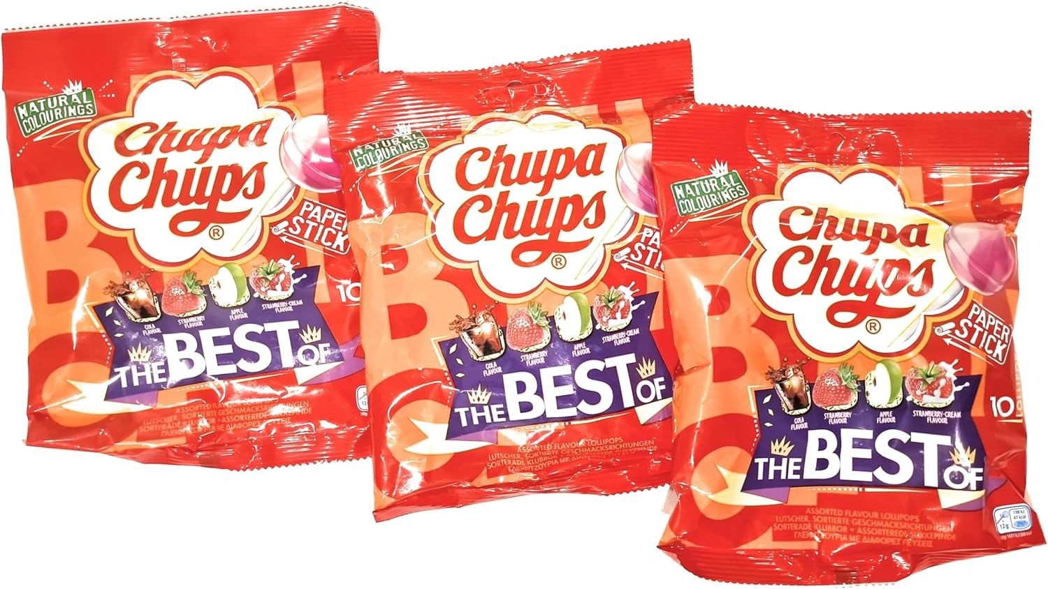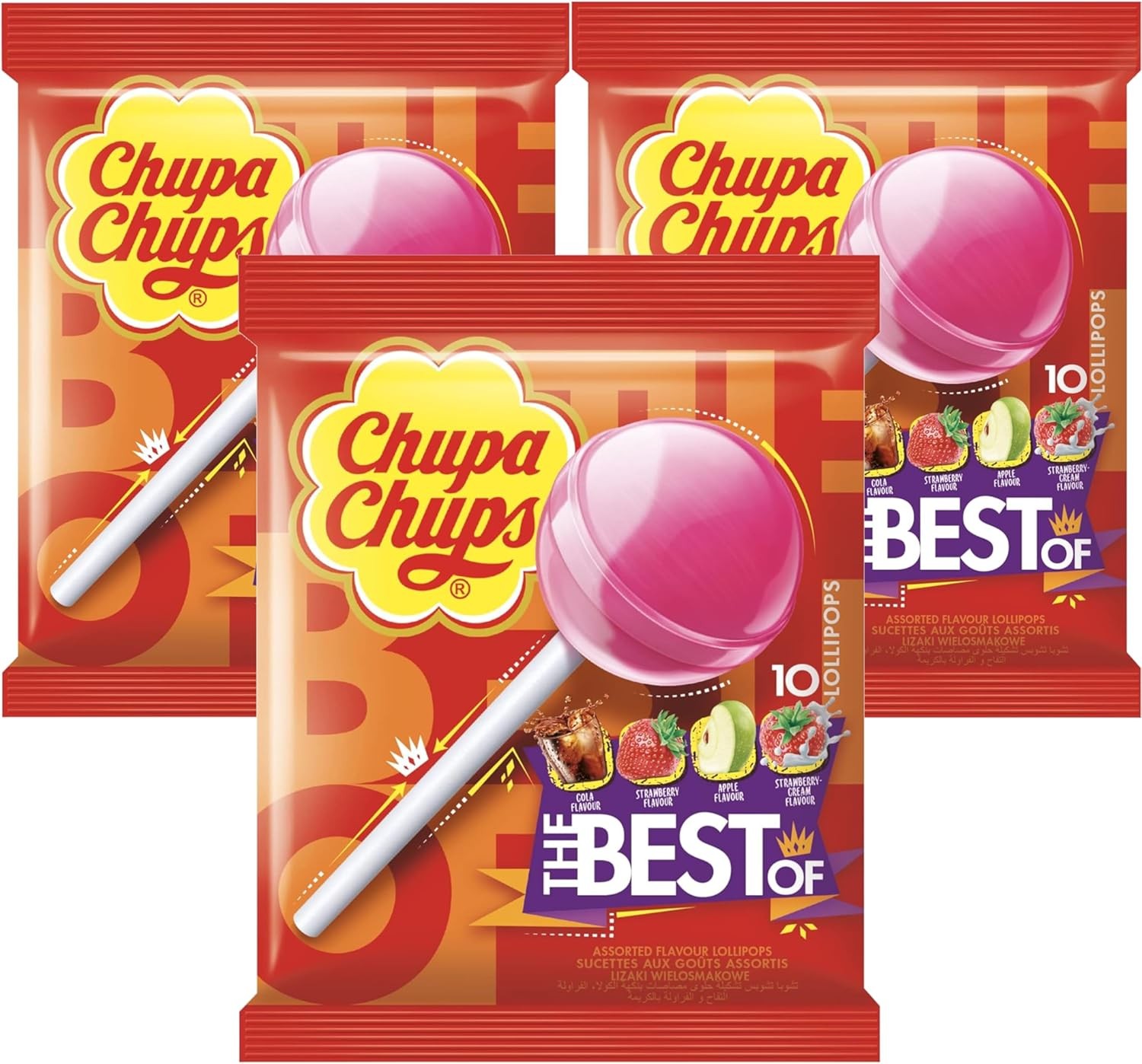 Chupa Chups The Best Of Lollipops 3x10 Pack - Assorted Flavours Strawberry Appl