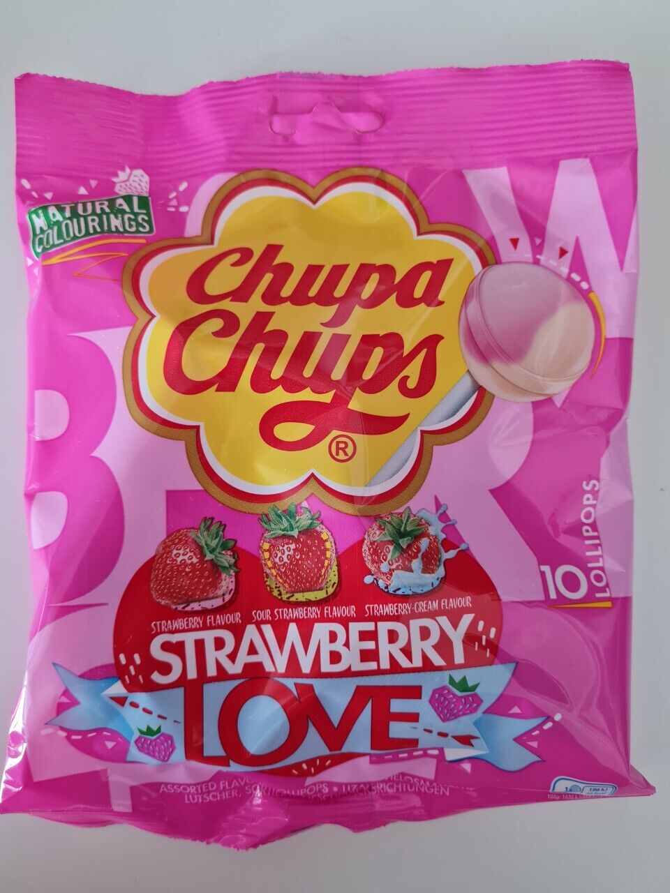 Chupa Chups Strawberry Love Lolli-Pops 1x120G Bag - NEW UK