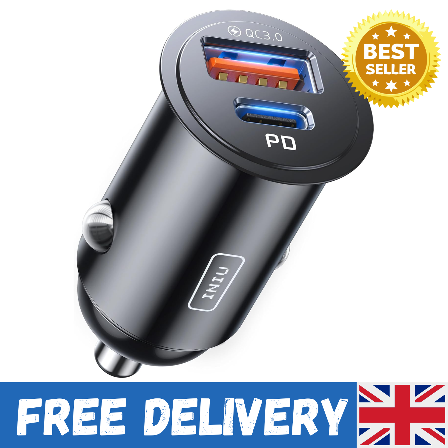 INIU Car Charger, Cigarette Lighter USB Charger Total 60W [USB C 30W+USB A 30W]
