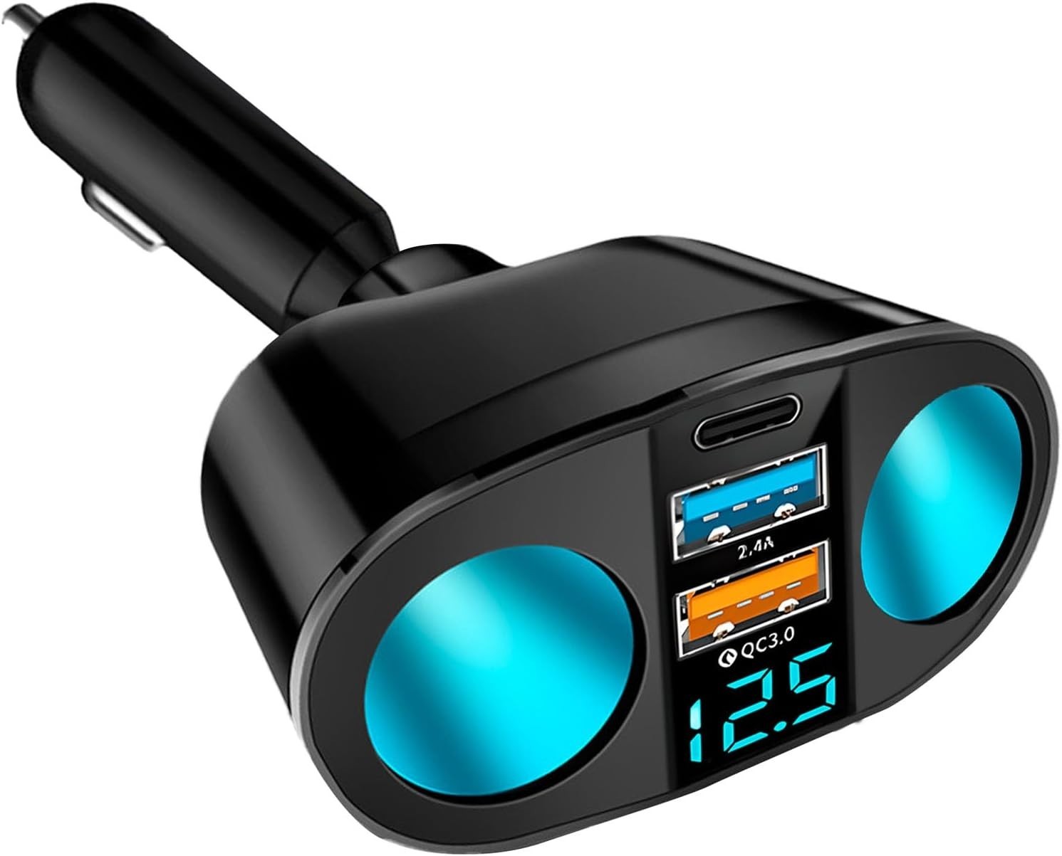 120W Car Charger Cigarette Lighter Adapter USB C QC3.0 and PD, 12V Multi-Socket