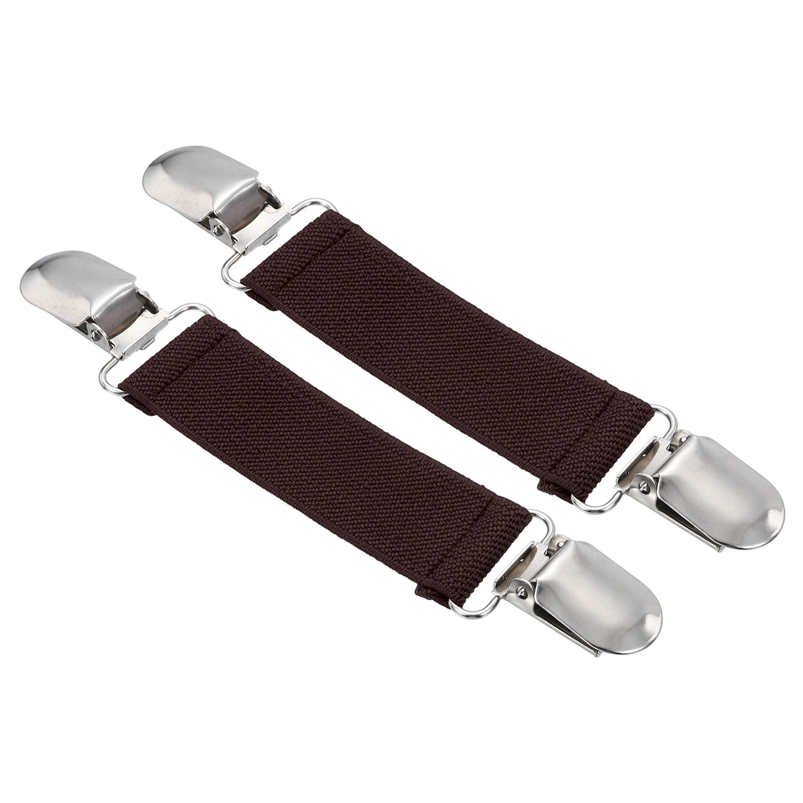2Pcs Elastic Hat Clips, Travel Mitten Clip Dress Back Cinch Clips, Brown