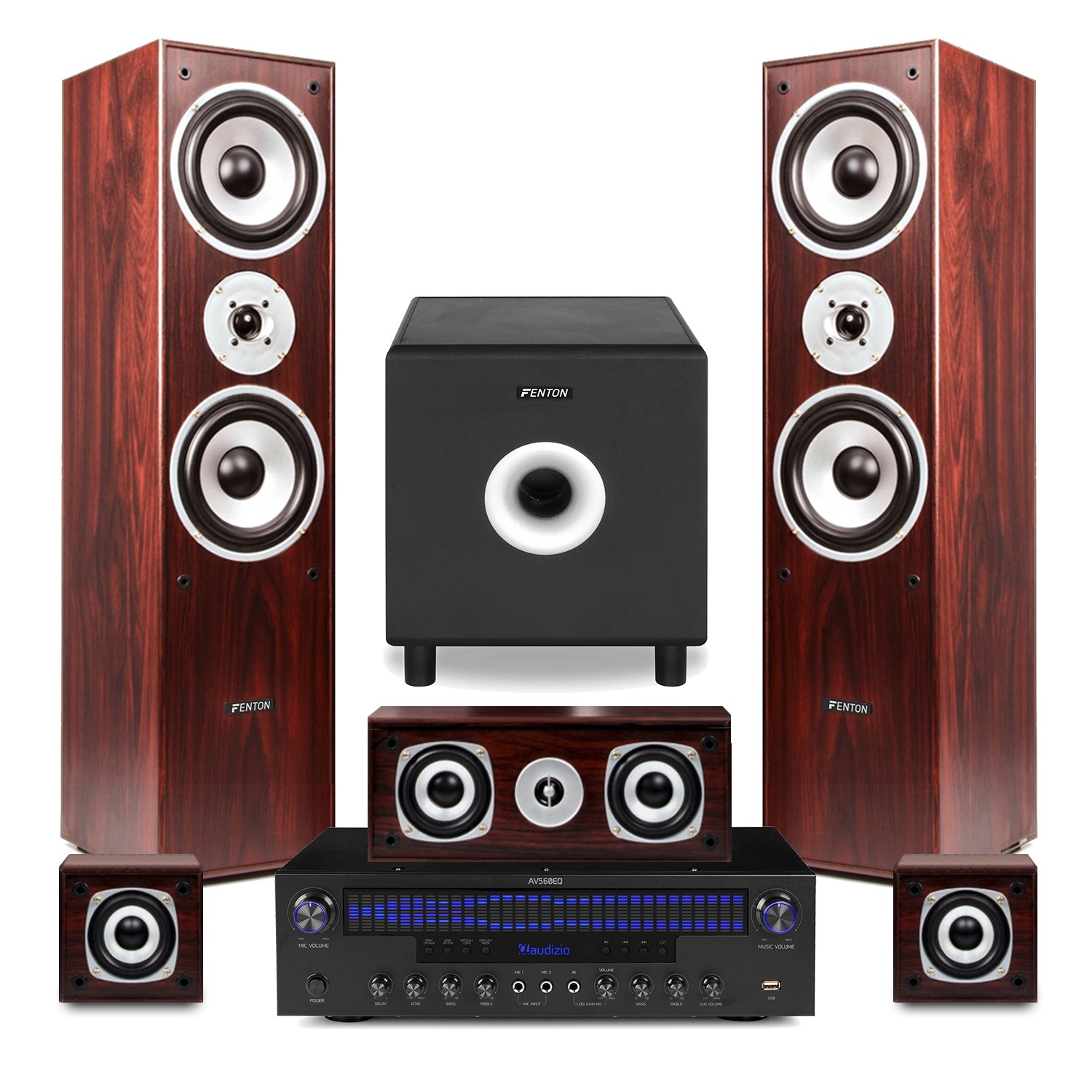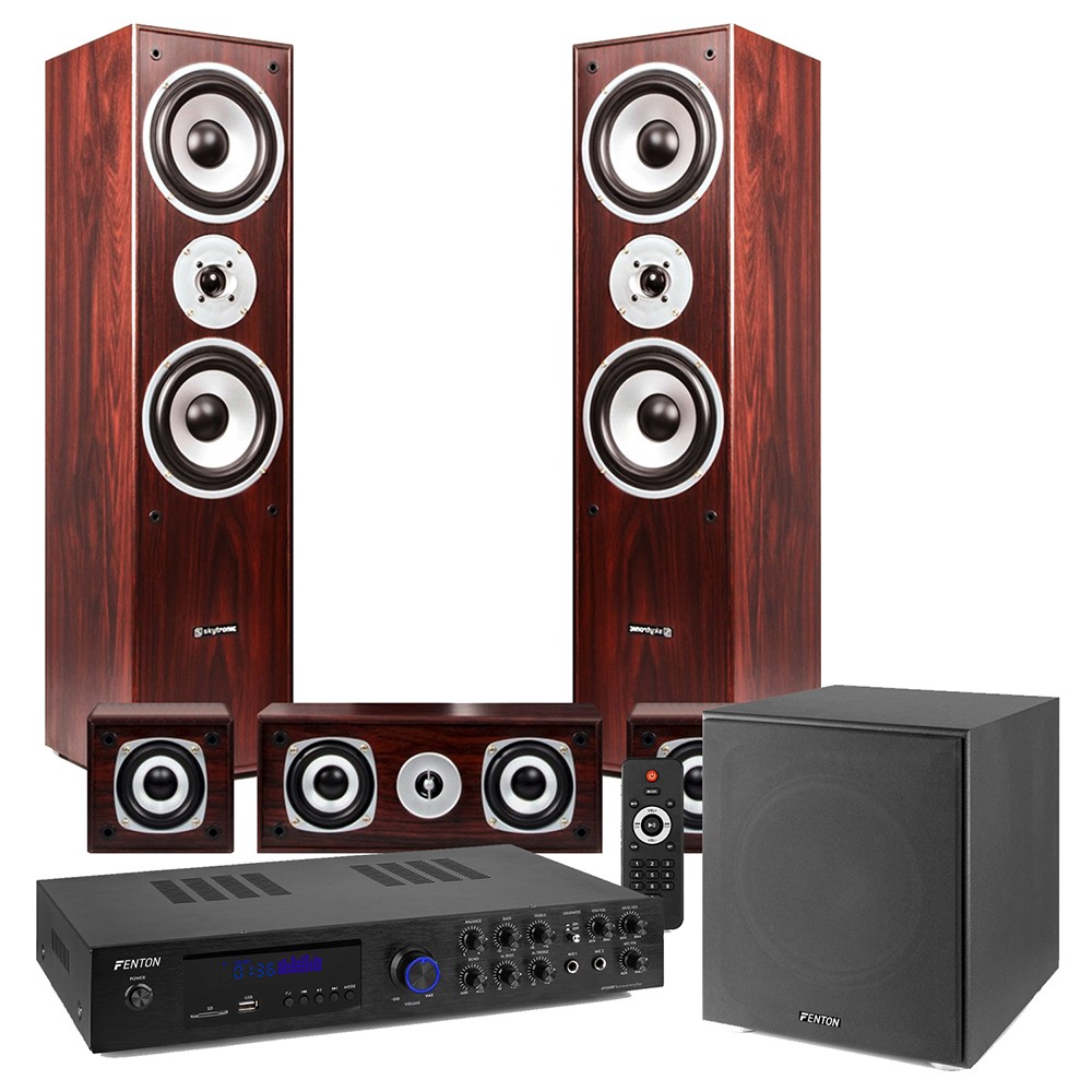Fenton 5.0 Home Cinema Surround Sound System with Amplifier, Bluetooth - Wood