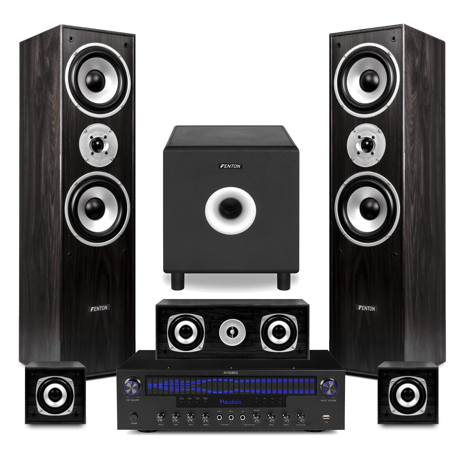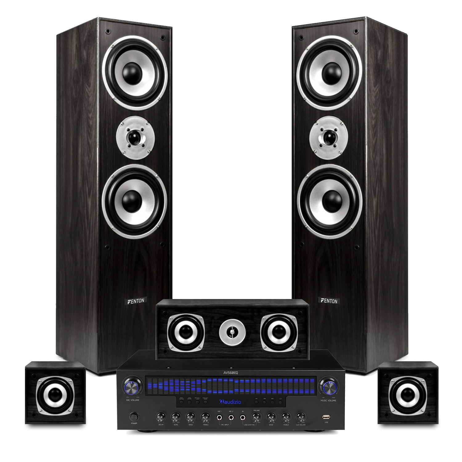 Fenton 5.0 Surround Sound Speakers Set 1150W Home Cinema Hi-Fi System