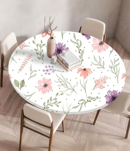 Highdi 3D Round Table Cover with Elastic, Circle Table Cloth Fitted Stretch Fitted Tablecloth Non-Slip Round Table Protector Washable for Home Hotel Dining Outdoor Garden (130cm,Botanical flowers)