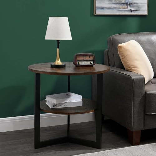FOTOEV Round End Table, Vintage Brown End Table Sofa Side Table Small Circle Table for Living Room, Rustic Farmhouse, for Room Corner, Living Room, Bedroom (Size : 50cm*50cm*60cm)