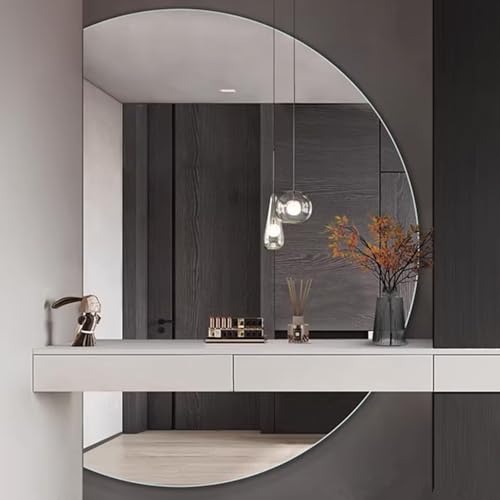 Xxbbyubo Half Circle Makeup Mirror Wall Mounted 36"x32", LED Tri-Color Backlit Wall Mirror for Home Decor, Semicircle 40"x36" Frameless, Smart Anti-Fog(Right cut,100 * 90cm)