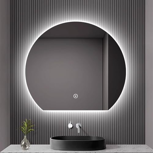 Xxbbyubo 28x32in Half Circle Frameless Wall Mirror with 3 Colors Backlit, Round Decor Wall Mirror 36" 40" with Anit-Fog for Bathroom, Touch Control Dimmable(Under cut,80 * 70cm)