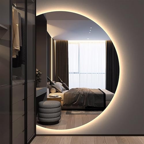 Dijateman 3 Colors Half Circle Fogless Backlit Wall Mirror with Lighted, Frameless Shatter-Proof Dressing Mirror, Dimmable, for Vanity Entryways Home Decor(Cut right,100cm)