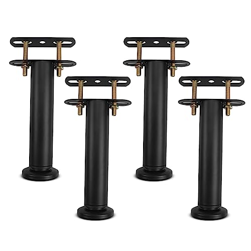 Bed Support Legs, Metal Adjustable Legs for Bed, Heavy Duty Bed Center Frame Middle Reinforce Circular Bottom Extendable Slat Support Leg for Cabinet Sofa Bed Frame Replacement Parts (Black 4 Pcs)