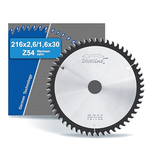 AKE Blueline Circular Saw Blade 216 x 30 Z54 Alternating Tooth, Carbide Fine for Wood, Wood Composite Coated Plastic on Hand Circular Saw, Underfloor Pull Saw, Table Saw