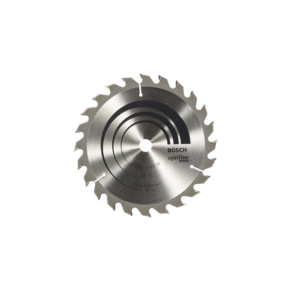 2608640817 Optiline Wood Circular Hand Saw Blade, 184mm x 2.6mm x 16mm, 24 Teeth, Blue