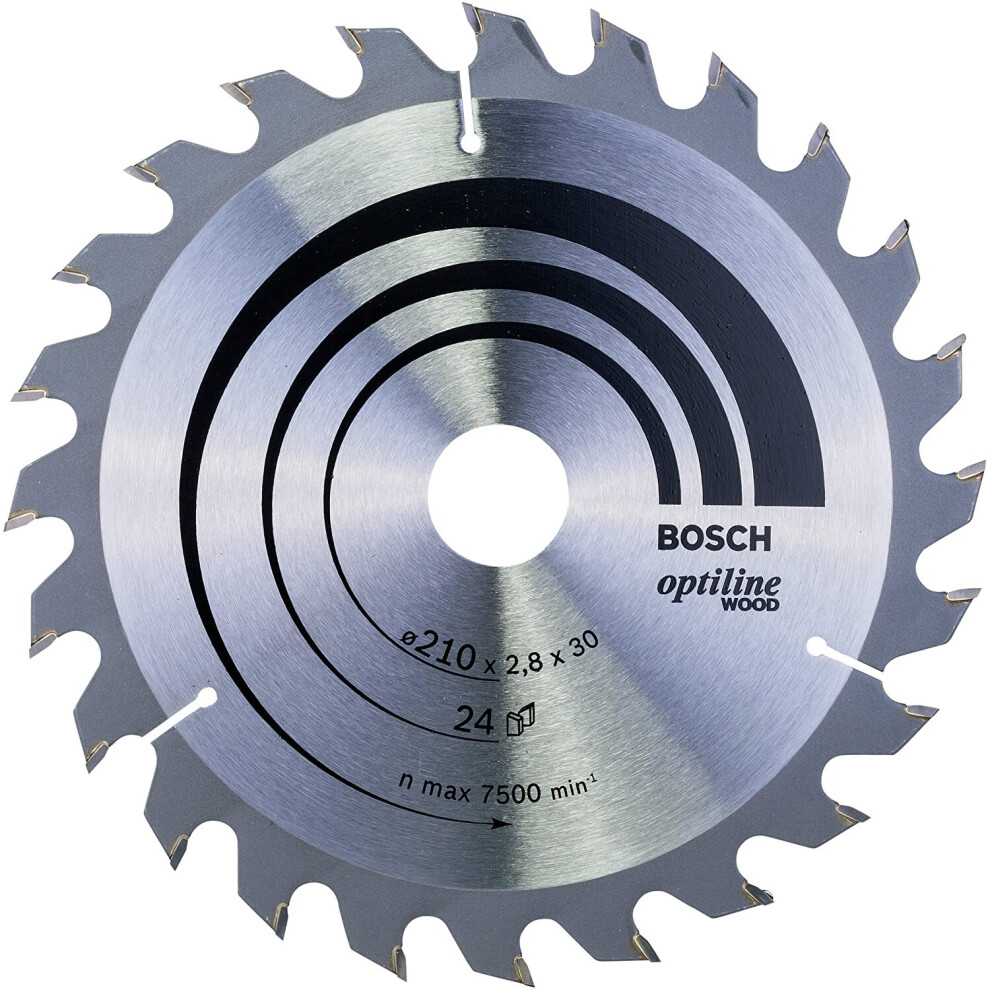 Bosch 2608640621 Optiline Wood Circular Hand Saw Blade, 210mm x 2.8mm x 30mm, 24 Teeth, Silver