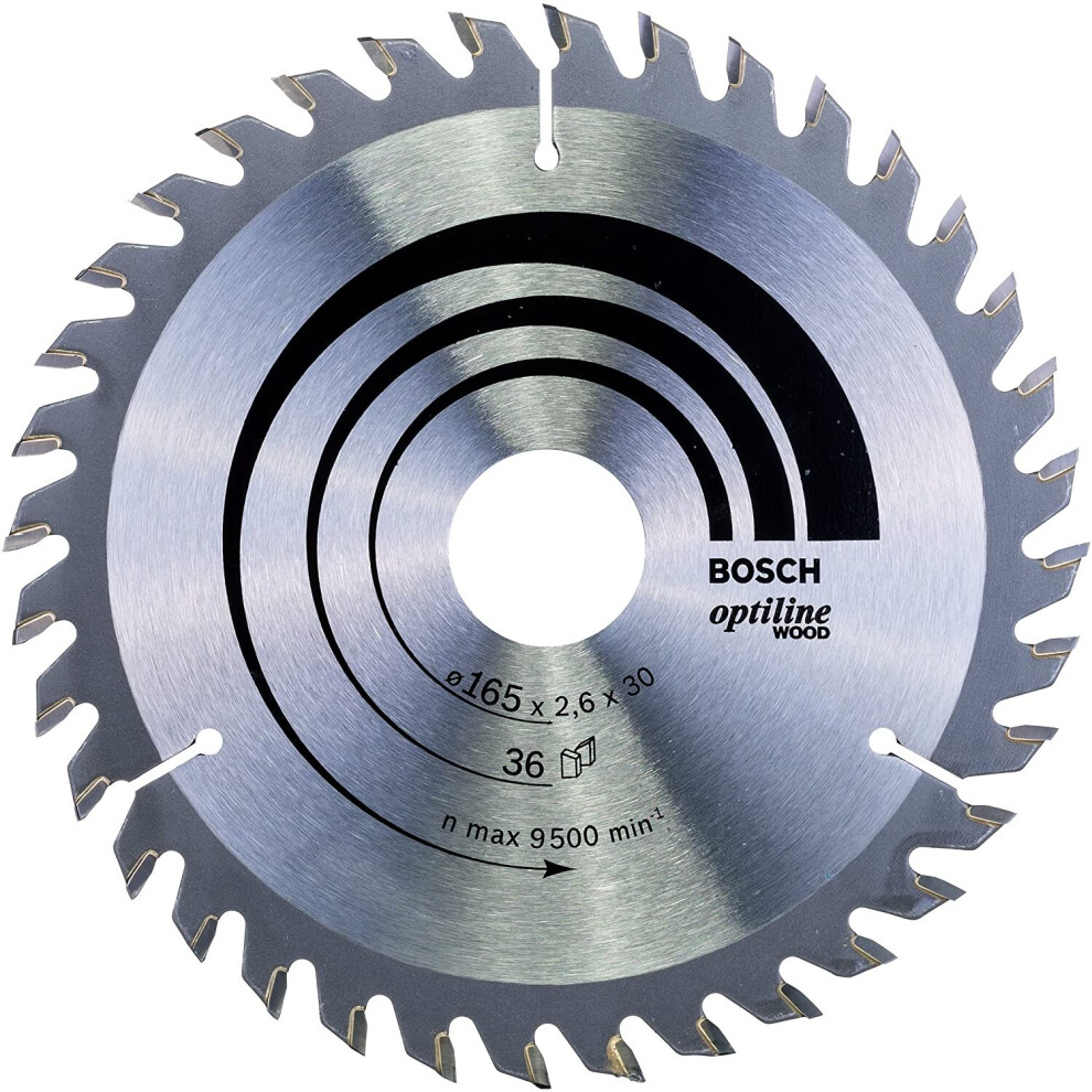 Bosch 2608640603 Optiline Wood Circular Hand Saw Blade, 165mm x 2.6mm x 30mm, 36 Teeth, Grey