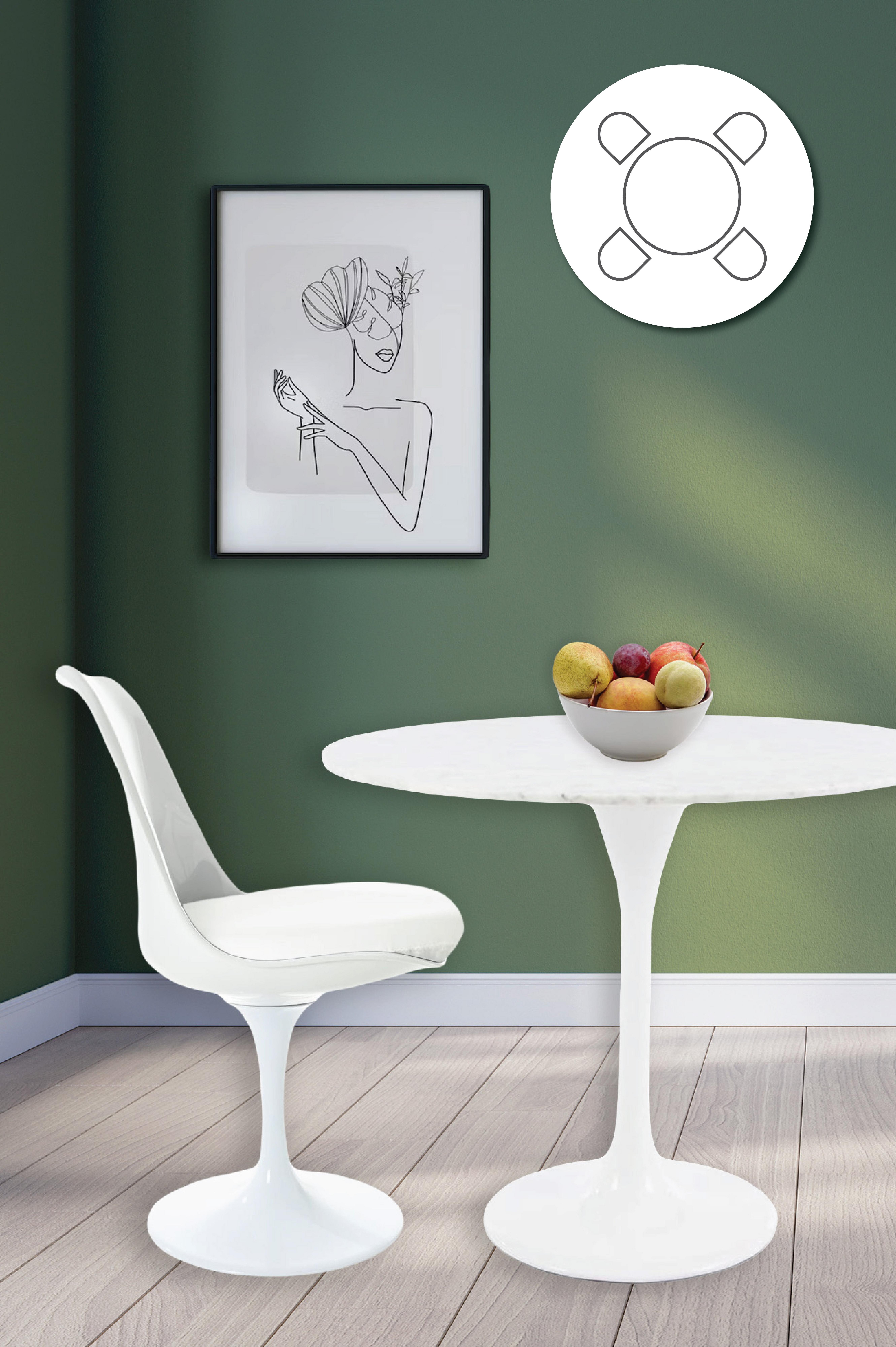 Tulip Set - White Medium Circular Table and Four Chairs with PU Cushion