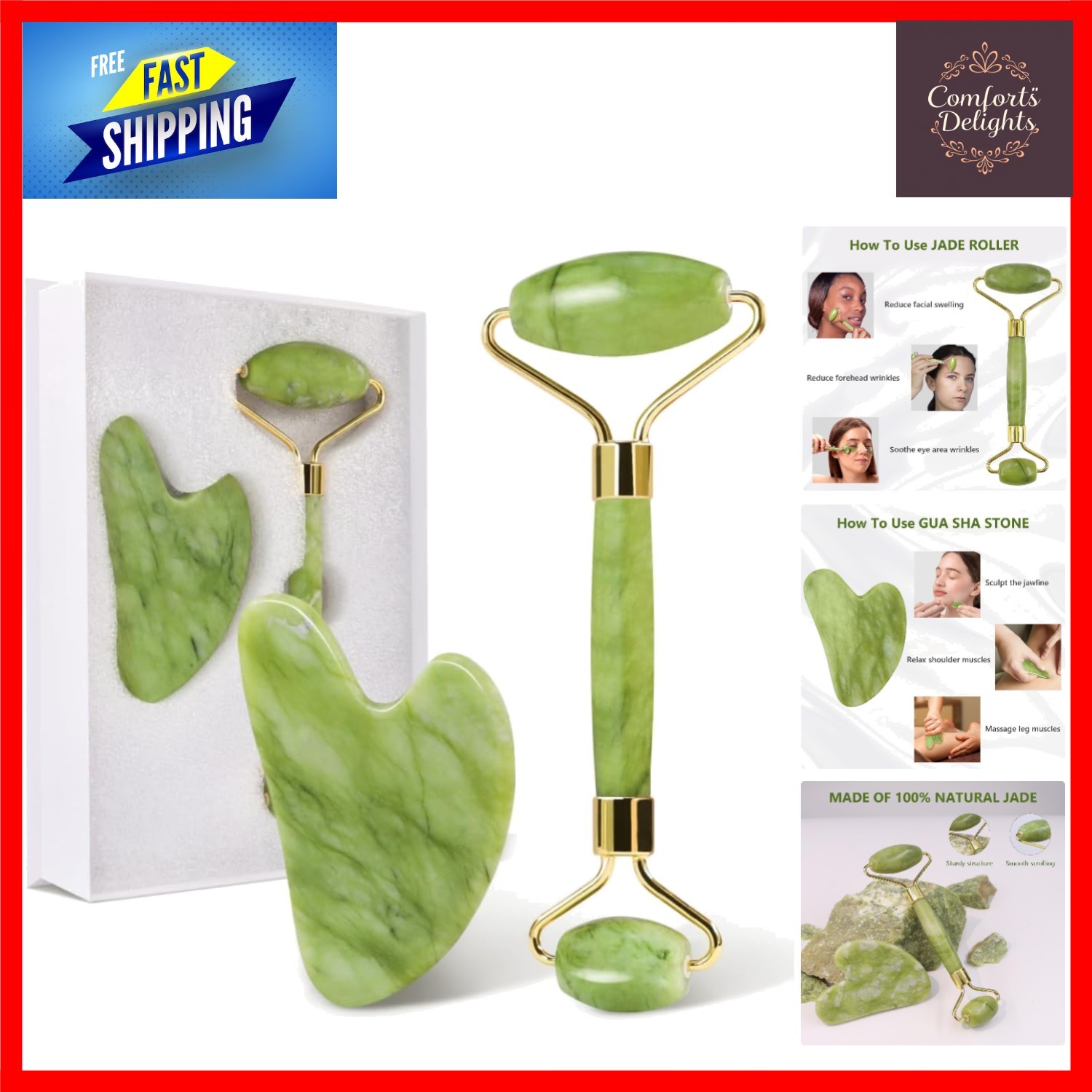 Portable Gua Sha and Jade Roller Set - Relaxation and Blood Circulation Booster