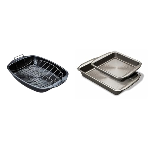 Circulon Ultimum Roasting Tin with Rack - Roasting Trays for Oven Non Stick & Momentum Deep Baking Trays Set of 2 - Non Stick Roasting Tins, Dishwasher Safe Bakeware