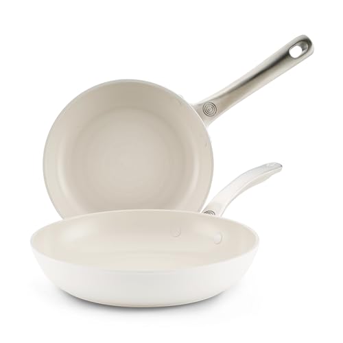 Circulon Halo with LaserDefense 20cm & 25cm Induction Hob Ceramic Non Stick Frying Pan Twin Pack – Made Without PFAS, Non Toxic Ceramic Cookware, Dishwasher & Oven Safe Skillet Pans - Pearl White